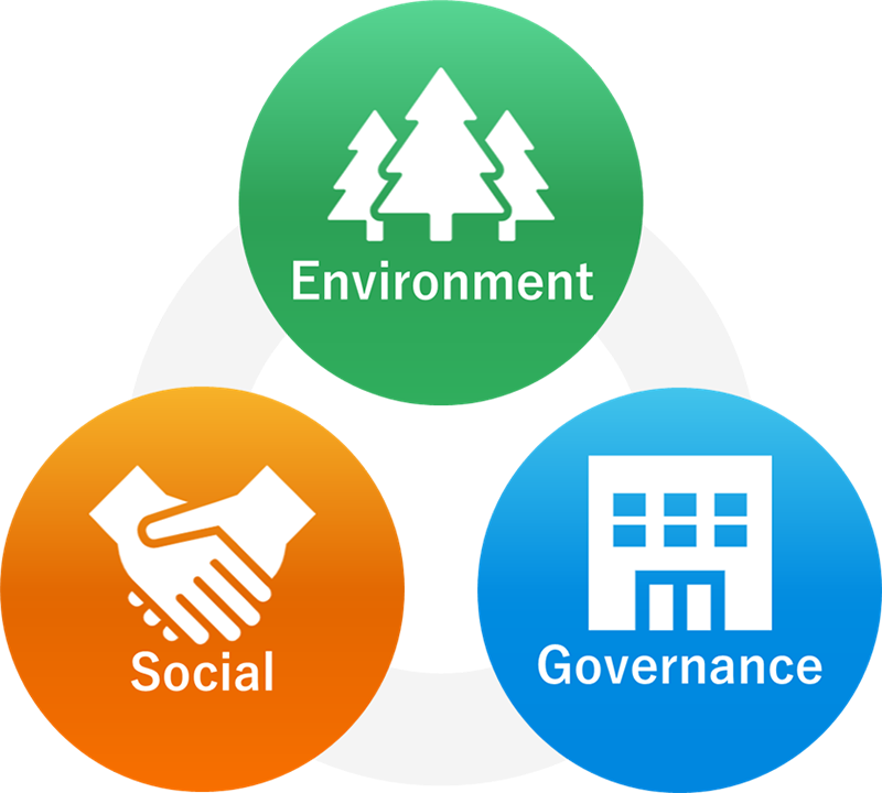 ESGとは、Environment(環境)、Social(社会)、Governance(企業統治)の総称です。 企業におけるESGに関する課題や取り組み情報(ESG情報)は、主に機関投資家を中心に、 企業の中長期的な価値を測る指標として使用されています。